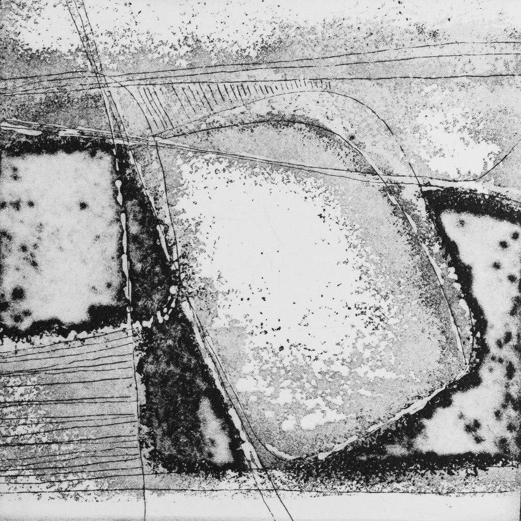 Aquatint etching on Somerset Satin paper. Memories of walks across the Oxfordshire hills around the Rollright Stones. A place of silence and beauty.